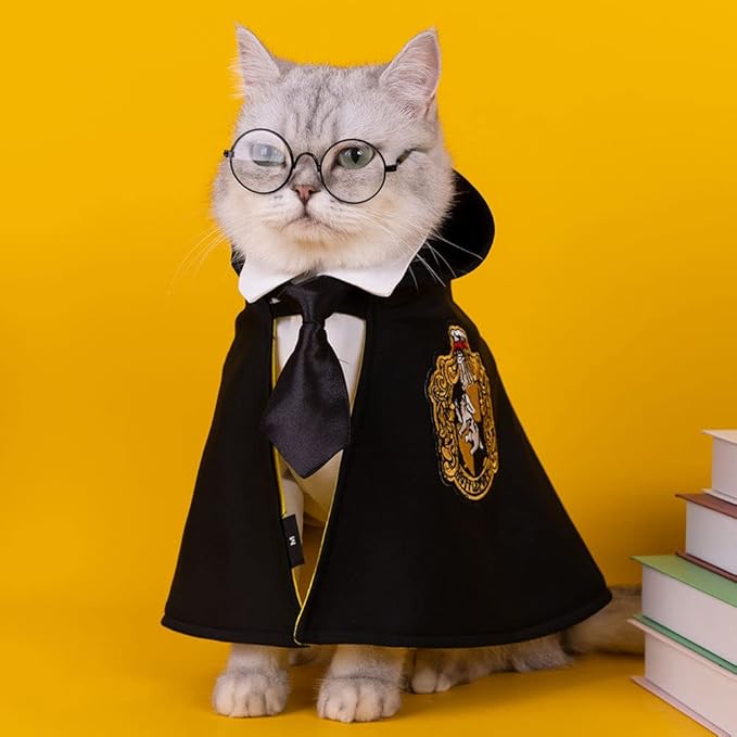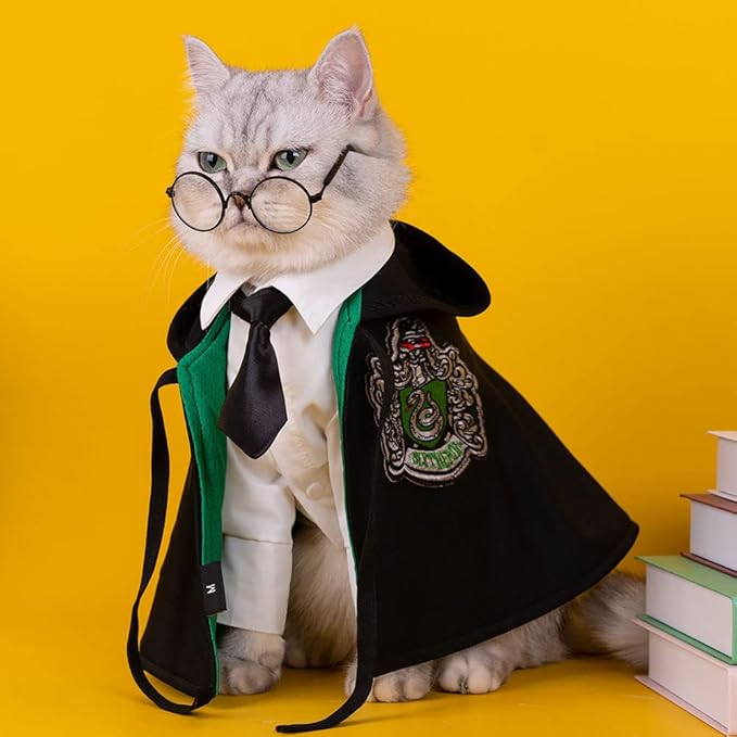 - 🐱【Unique Cape Design】When your pet wearing this T-shirt, I believe he will attract a lots attention, and wizard style appearance looks mysterious, just like you and your pet are really in the wizard school for Learning magic