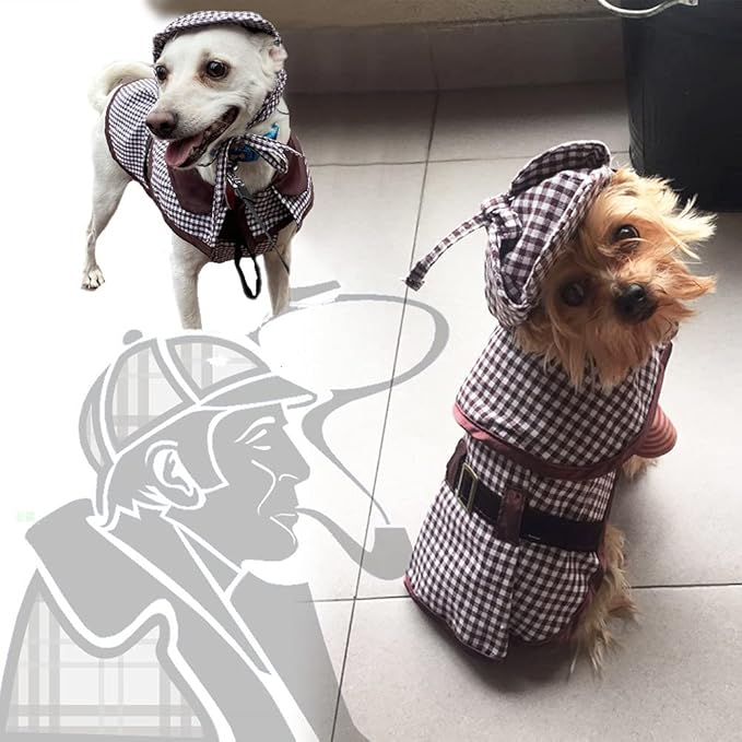 Dog Halloween Costume Famous Detective Dog Costume, Dog Detective Costume Halloween for Dogs Outfit Pet Costume, Funny Dog Cosplay Costume Small Dog Halloween Costume for Christmas Birthday Party